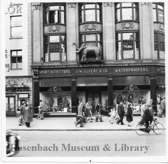 The bat had the misfortune of being on display in the shop front of Elvery’s store on O’Connell Street, then Sackville Street, during the Easter Rising. J.W. Elvery & Co. was Ireland’s oldest sports store, specialising in sporting goods and waterproofed wear, with branches in Dublin, Cork (Patrick Street) and London (Conduit Street). The shops had a distinctive figure of an elephant above the front door, giving them the name Elvery’s Elephant House. Its city centre branch was at this time located at 46 & 47 Lower Sackville Street (now a Supermac’s, sadly without the elephant though its plinth is still there), and even got a mention in James Joyce’s Ulysses.