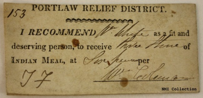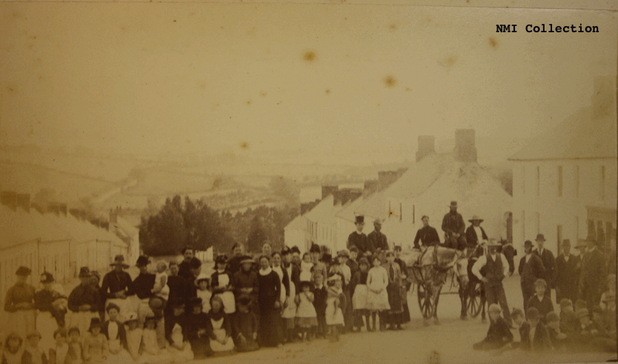 The images from the Coolgreany Eviction album, comprised of photographs of the infamous 1887 series of evictions in the Coolgreany area near Gorey in North Co. Wexford, are already fairly well known. The National Library of Ireland acquired a copy in 1992 from the grand-niece of Fr Laurence Farrelly, who was active in the Plan of Campaign in Co. Wexford in the 1880s. Some of the images were used in the NLI’s wonderful Notice to Quit exhibition in 2003, so are very familiar to some. A letter that came with the donation identifies a T. Mallacy as the compiler of the album (and also probably the photographer), which he gave to Fr Farrelly in 1888. The National Museum also acquired a copy of the album in 1942, compiled in the same manner and probably at the same time as the NLI’s. This copy has handwritten captions on some of the images, identifying the people and places, though we do not know who wrote these captions.