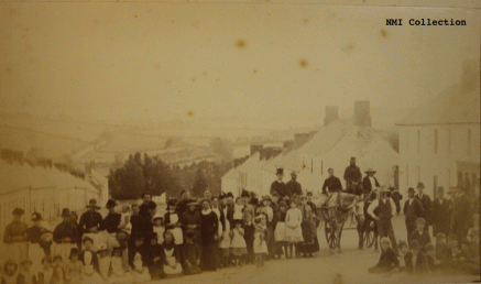 The Plan of Campaign (where tenants withheld rent from the landlord until a rent reduction was negotiated and agreed) was adopted by the tenants on the Brooke Estate in December 1886. The terms were refused by the owner, and in February 1887 Hamilton was preparing for a series of evictions. The eviction campaign started in July of that year, and numerous families (many of whom are photographed in the album) were removed from their homes by force by Hamilton’s bailiffs and Emergency Men.