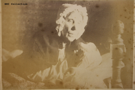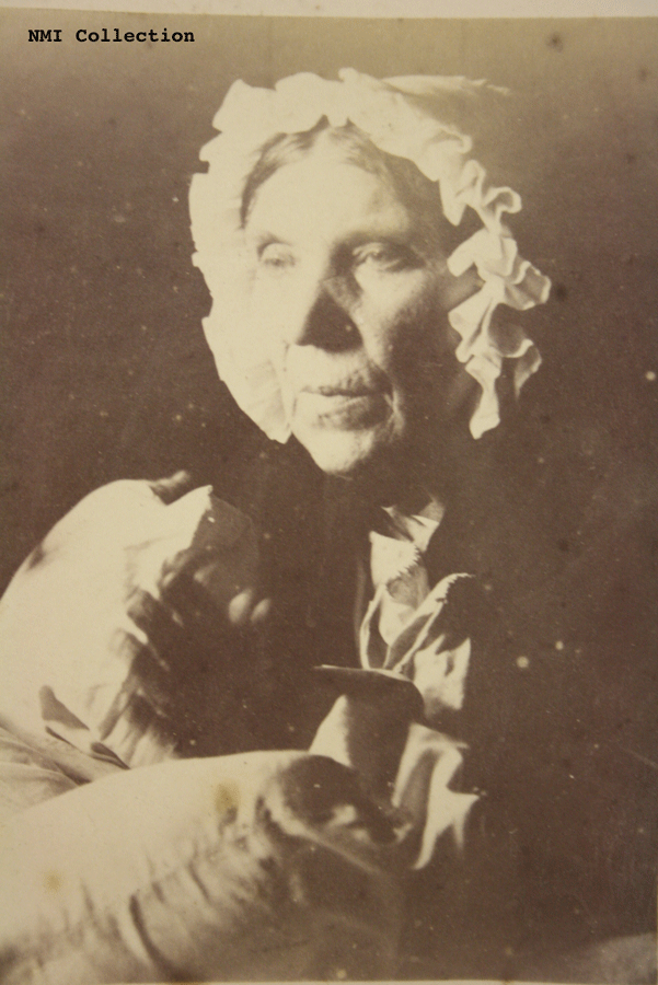 A particular set of photographs stood out for me; the photographs of the 80 year old Mrs Darcy, taken at her sick bed in the process of her eviction from her home in Ballyfad, Coolgreany, in July 1887. Many photographs of evictions are of the eviction scenes themselves, or depict evictees posing outside houses for the camera. The photographs of Mrs Darcy are taken inside her home, making them look quite dark and despairing, yet there is also an air of defiance in her face.