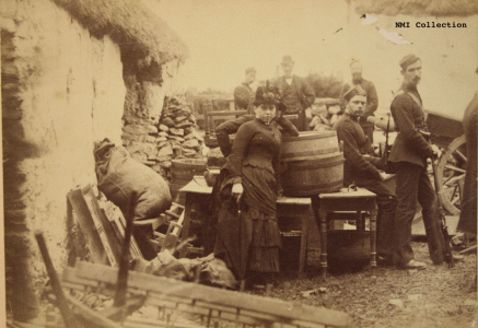 The delay to the Darcy’s eviction did not last long though, and a later photograph shows Miss Darcy gathering up her furniture after eviction for conveyance to the Campaign Cottage (cottages set up by the Plan of Campaign as shelters for evicted tenants).