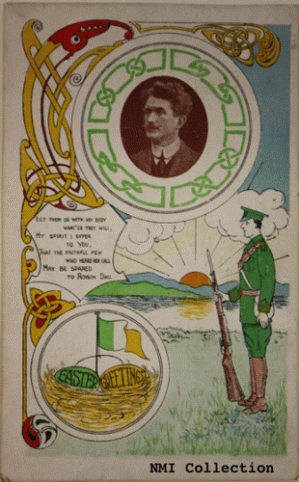 The National Museum, Kildare Street, Dublin, will be the scene of a striking exhibition of relics connected with the events and personalities of the Rising of Easter Week, 1916, and the succeeding epochs on the occasion of the 25th Anniversary. The special collection is already well known and since its foundation in 1935 has materially increased. The opportunity has been taken to display the Collection on a more extended basis utilising the large courts adjoining the museum entrance at Kildare Street now being prepared. No pains are being spared to make the Commemorative Exhibition worthy of the occasion and it is expected that a large public will find it worthwhile visiting when opened on Easter Saturday next, 12th April. The Museum Rotunda will be occupied with a notable group of exhibits illustrating by personal or other relics the political history of the country from some time after the battle of the Boyne when national thought took an entirely new trend till the beginning of the present century. It is intended to illustrate the historic background of the various movements out of which the Republican Movement arose and into which various lines of political thought were canalised. The exhibition proper will show the uniforms of the various military groups participating in the Rising and the aftermath, arms and other details of equipment, relics of the leaders and will include such varied items as a collection of watercolours of Countess Markievicz, the Childers Memorial Collection and numerous items illustrating the growth of the organisation. A small exhibit illustrative of the Gaelic League will also be included. It is hoped that the exhibition will lead to the inclusion in the Collection of numerous relics still in private hands. There will be no charge for admission.